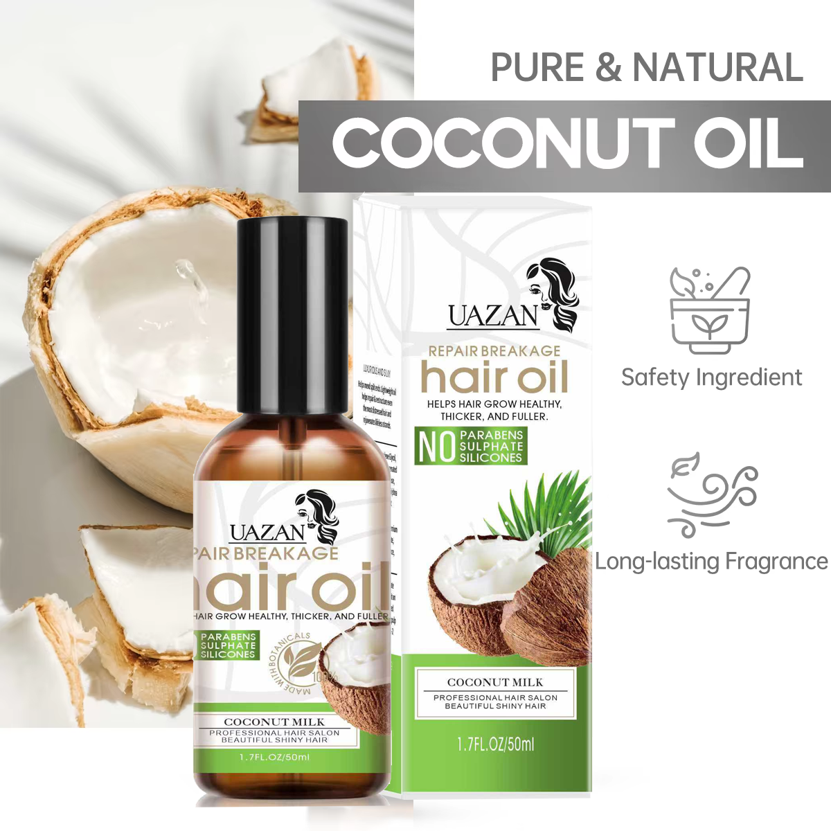 Wholesale UAZAN Private Label Organic Men Women Anti Hair Loss Treatment Batana Coconut Oil Rosemary Hair Growth Serum Oil